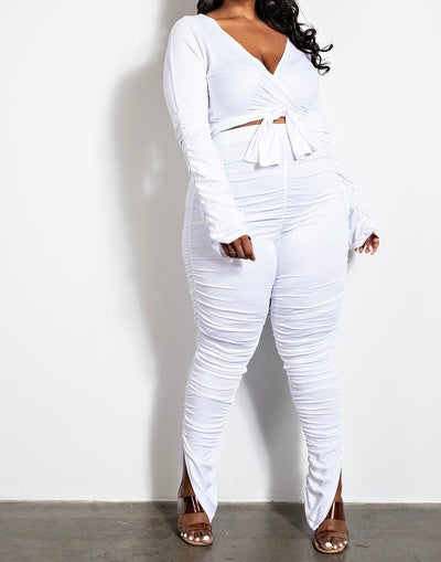 - Ruched Sleeve Wrap Top