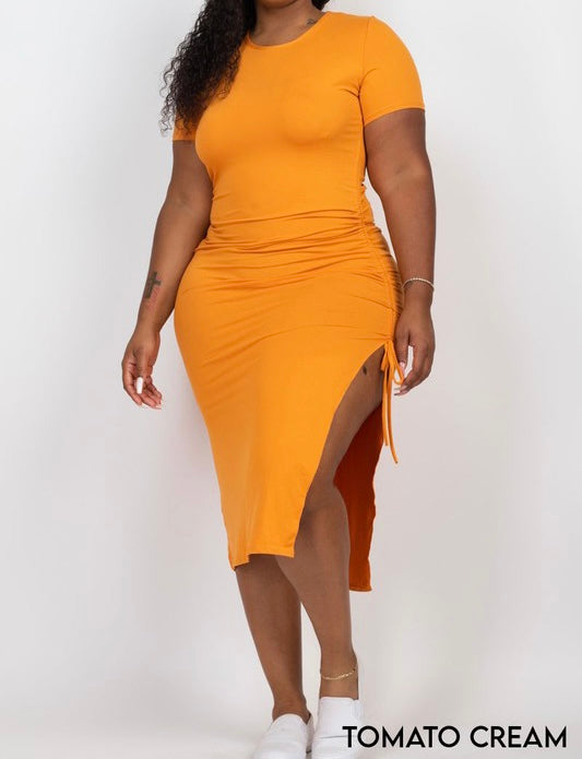 Ruched Short Sleeve Midi Dress
